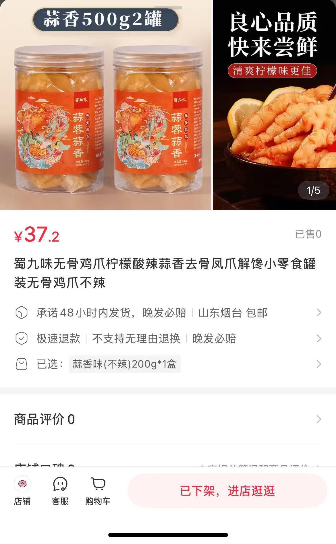 南都湾财社记者在抖音、淘宝、京东等平台搜索多个涉事品牌产品,页面显示无搜索结果。小红书显示,曾有网友分享涉事产品蜀九味无骨鸡爪的下单链接,目前,该产品已被下架。南都湾财社记者搜索发现,蜀福香官方公众号显示,该公司曾于2024年发表一篇文章称,公司对于食品生产质量必须加强监管,严格把关,确保食品生产质量安全可靠,并称公司生产质量提高才是发展的核心竞争力。